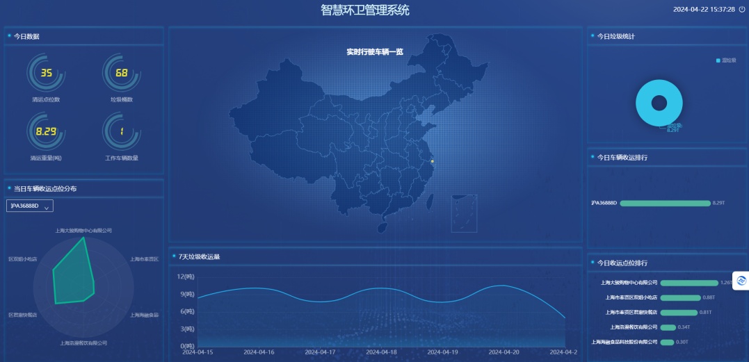 数据支持: 自动统计各个收运点位的垃圾量,形成日报表、月报表,可用于数据分析,为城市环卫规划提供数据支撑。
