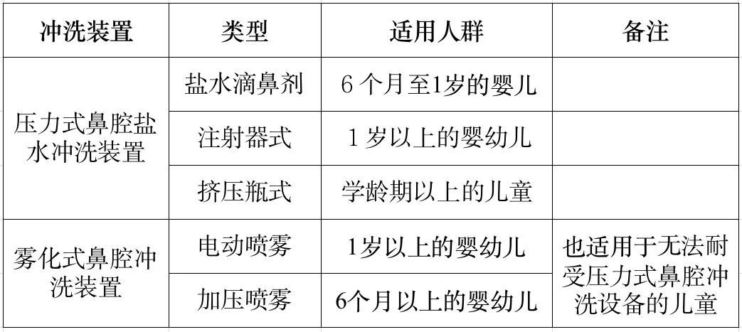 3. 儿童鼻腔盐水冲洗装置可分为压力式和雾化式,可根据年龄及承受能力选择,6个月以下婴儿及一些特殊情况不宜使用。
