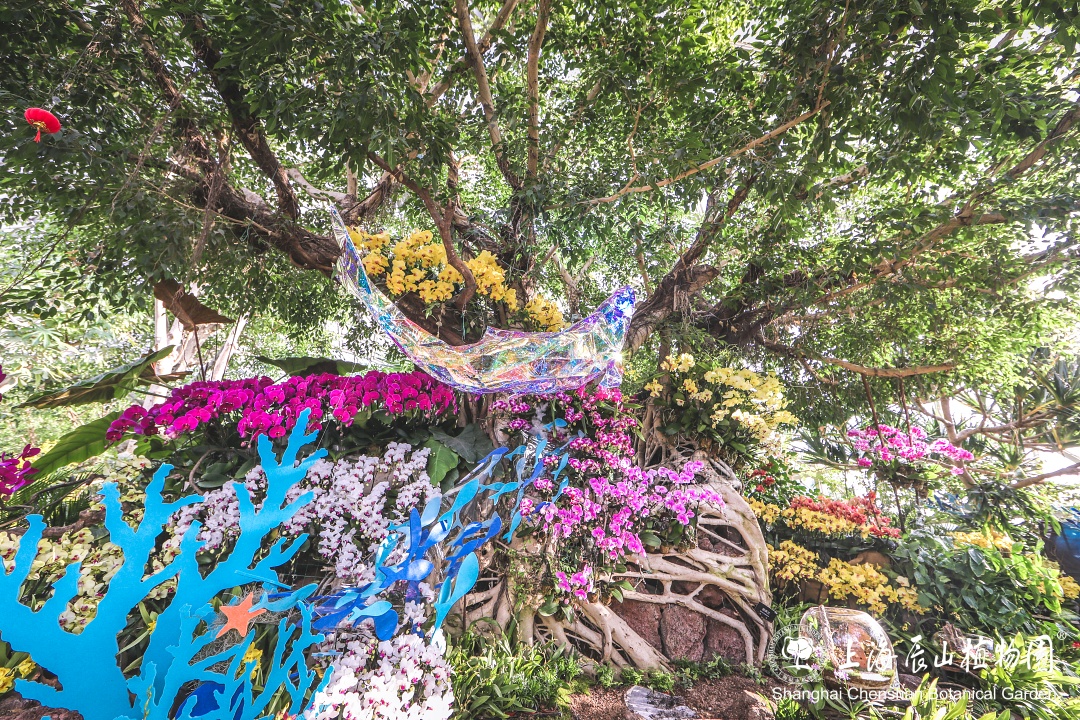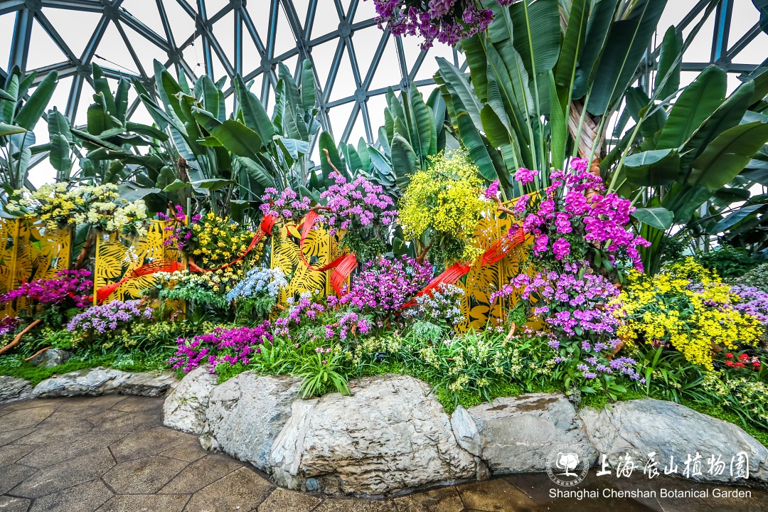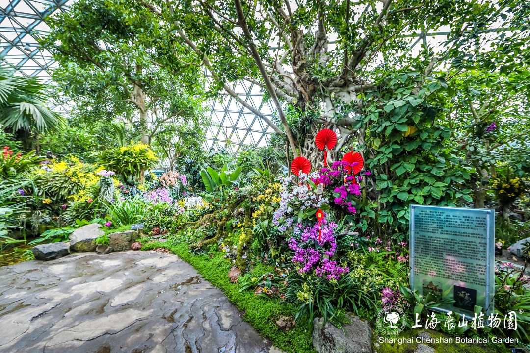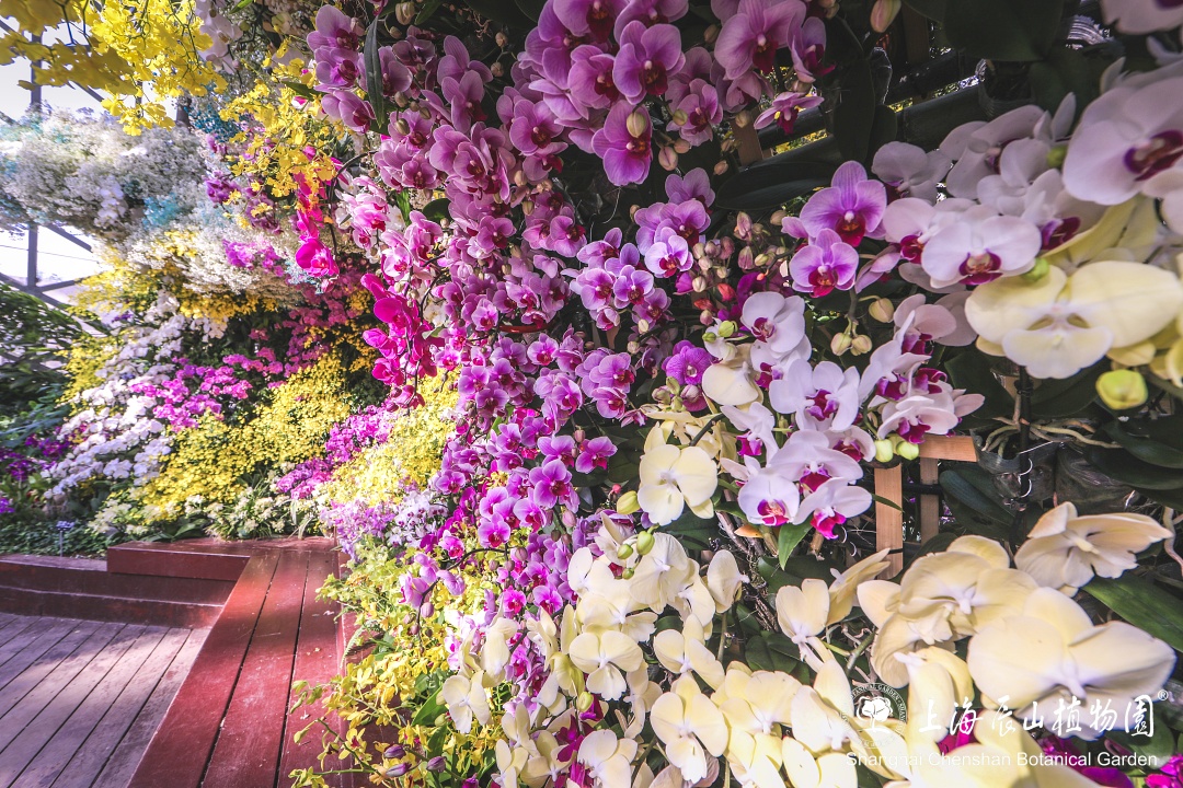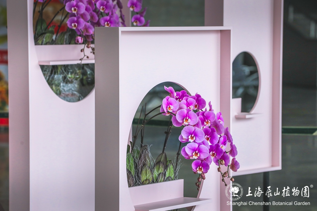 景点以精致花艺展示了蝴蝶兰、文心兰、万代兰等具有代表性的园艺品种,也展现了人类作为“新型传粉者”在兰科植物繁育方面的研究成果。