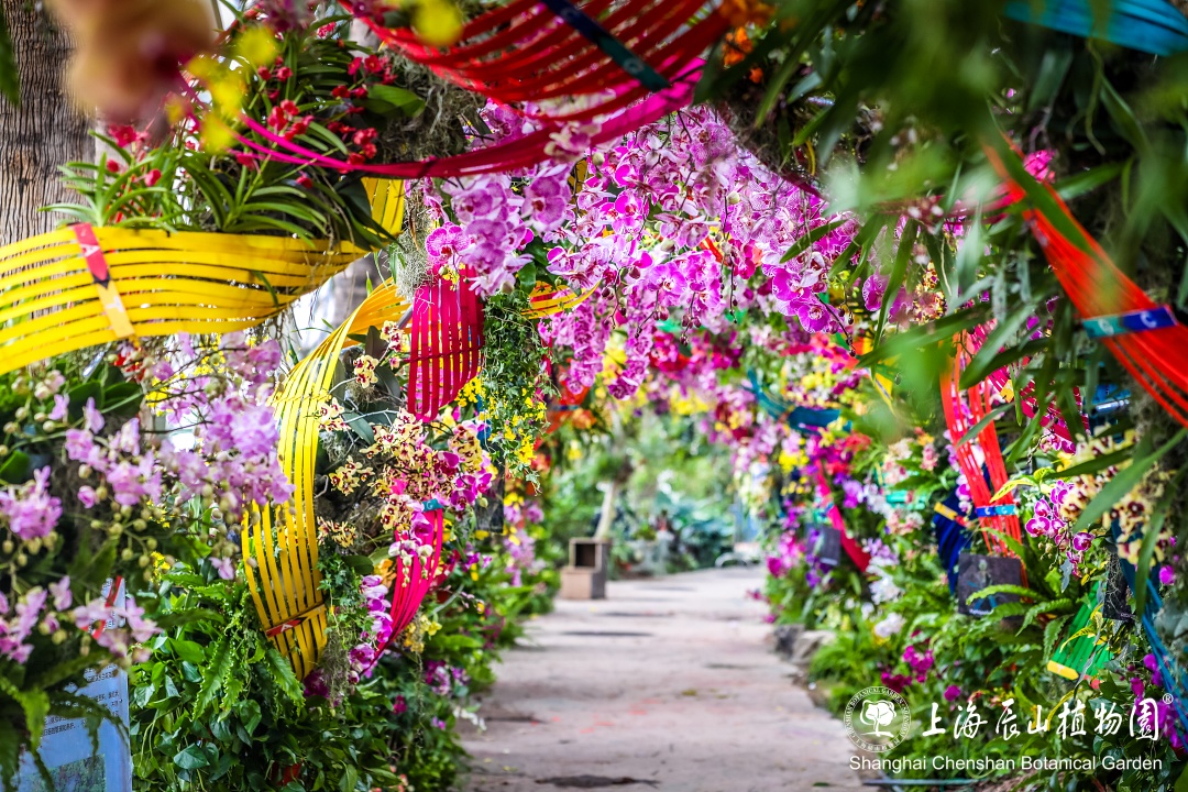 游客漫游在由各种兰花搭建的花廊中,还能从花廊内部的展牌深入了解兰科植物在花发育、结构、化学成分、药用价值等方面的知识。