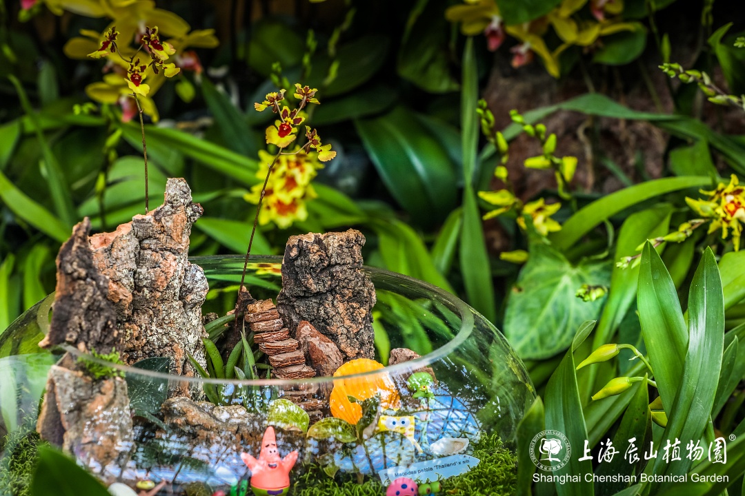 以海洋元素呈现兰花,配合馆内环境布置、温室空间联合成“海洋龙宫”的意涵。素有“兰中精灵”之称的宝石兰等兰花,将以“景中之景”的美妙微景观形式呈现。