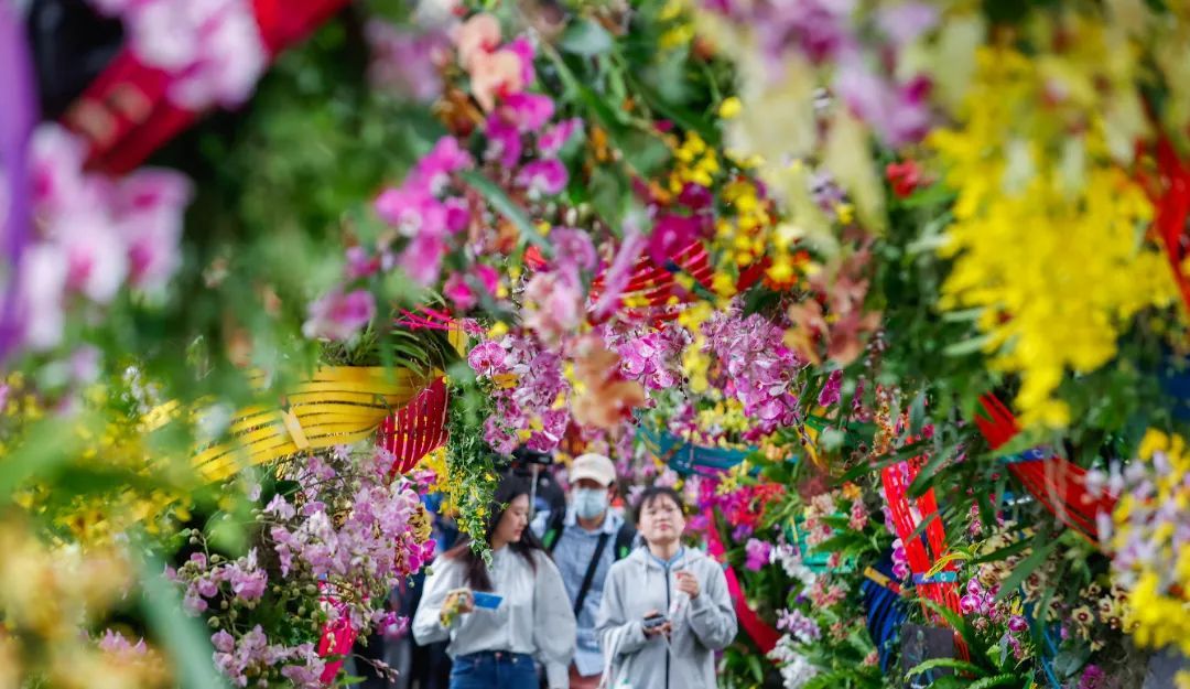 园内以兰花为主要元素进行环境布置,各种兰花色彩斑斓、芳香四溢,让人宛若置身“花花世界”。在科技之兰板块,园方以精致花艺展示了蝴蝶兰、文心兰、万代兰等具有代表性的园艺品种,游客可以漫游在由兰花搭建的花廊中,深入了解兰科植物在发育、结构、化学成分、药用价值等方面的知识。
