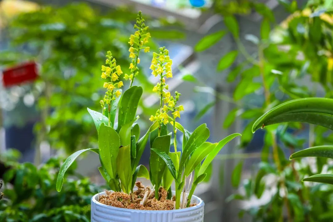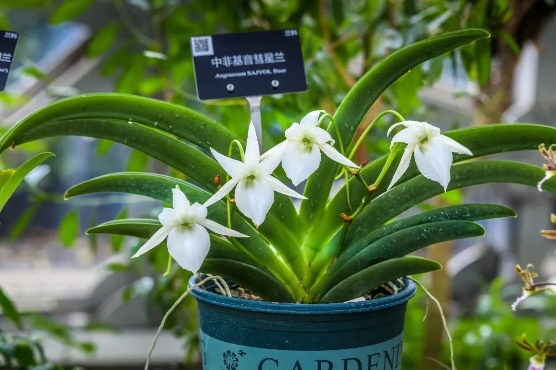 据介绍,本次兰展还展现兰花的生物多样性、呈现兰花保育、培育最新成果,2个辰山植物园自育的新品种“中非”系列也特别亮相。“我手中的就是丹尼尔——中非传馨多穗兰,它的父母本是我们从非洲引种回来的。”辰山植物园园艺景观部高级工程师邵丽向记者展示辰山自育的香花新品种,“这个品种花量密集,花期为4至6月,初开为绿色,随着时间的推移会变成黄绿色,最后直至接近橙色。它还有着独特的香味,在早晨最为浓烈。”