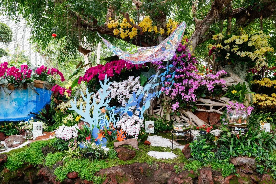自然之兰板块则以海洋等元素呈现兰花,介绍了兰科植物野外生存场景和人类在兰科植物野外回归方面取得的工作成果。喜欢国兰的游客,可以在蕙之华国兰特展看到30多种蕙兰,了解国兰快速繁殖的技术进展、兰花期调控技术和未来人工智能化的兰花工厂愿景。