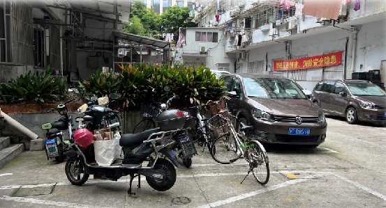 “我经常看到3、4楼的居民从屋里拉根电线出来,在户外给电动车充电,非常不安全。我们也整天心慌慌,万一发生火灾,那可不是小事情。”海西小区居民蒋阿姨告诉记者,因为地下非机动车库无固定车位,造成小区充电问题的矛盾日益凸显。此外,让老年人们停车不方便的还有,地下非机动车库的斜坡很陡,电动自行车的上坡和下坡都非常不方便,因此,大多数居民就干脆将电动自行车停放在了小区地面上,这也造成了地面空间的杂乱。机动车和非机动车,一直在互相挤兑空间。