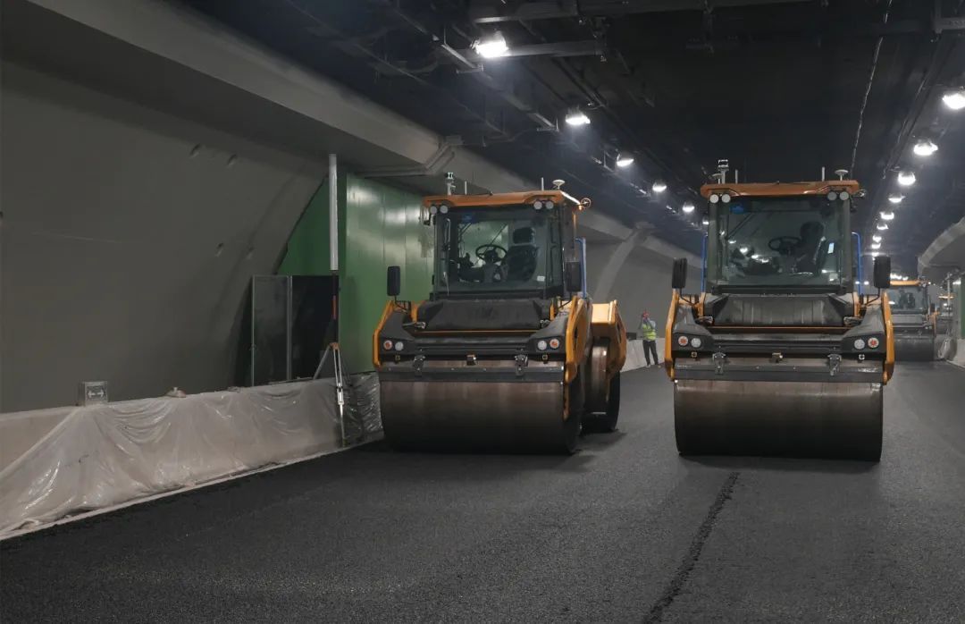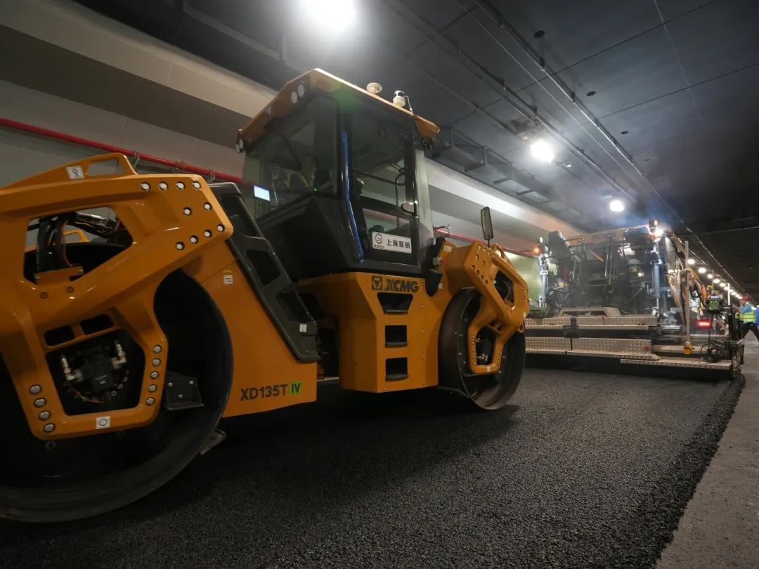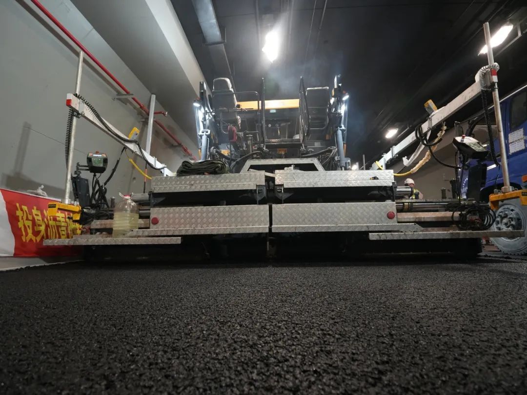 此次隧道路面铺设工艺,是国内首次在城市地下长隧道中进行无人摊铺、压实新工艺应用。