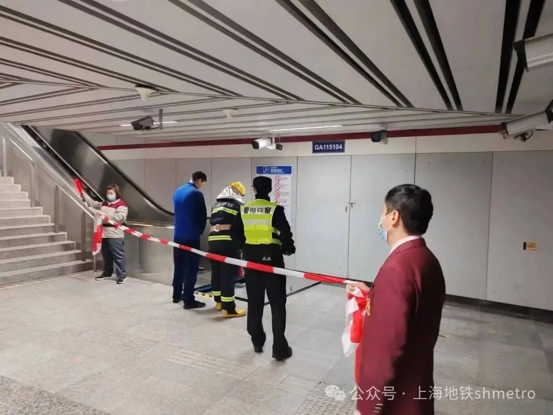 基于五一长假周边商圈客流上升,自动扶梯使用率上升的情况,11号线曹杨路站区立足“三联机制”模拟运营期间车站自动扶梯下方盖板着火有烟雾冒出的情况。车站联合毗邻商场、消防救援站、警务站等各单位共同参与演练实操,各岗位分工明确处置有效,演练取得了预期效果,进一步加强了轨道交通车站与毗邻建筑之间的消防安全信息联通、火灾联防联动关系,全面提升轨道交通与毗邻建筑的消防安全管理、火灾防控和应急处置能力。