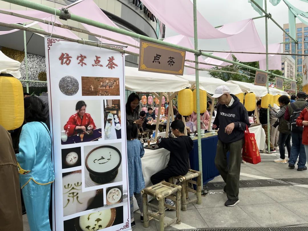 活动当日还设置了“彭乐艺站”开放日文化市集,让有兴趣的市民们能够亲身感受身边的城市美育。摄影、书画、非遗漆扇、古法香囊、古筝、禅意插花、点茶、香道、围棋……小镇的优秀文化团队们带来让人眼花缭乱的选择,这些项目也将作为今年小镇公共文化驿站的具体课程服务,被送进居民区、楼宇园区,为居民和白领们提供更多文化体验和学习机会,为彭浦镇注入新的文化活力。