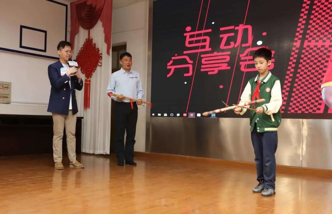 学校也为王勇精心准备了一份特别的非遗礼物——打花棍,现场还有学生演示了打花棍。值得一提的是,打花棍是学校开展的特色体育项目之一。