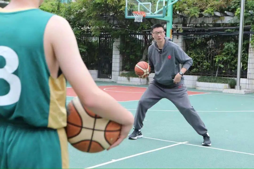分享课结束后,王勇还在篮球场上给学校“旭日”男子篮球队上了一堂专项篮球课,从篮球基本功开始,通过传、接、运、对抗等环节,分享独家的篮球技能心得。
