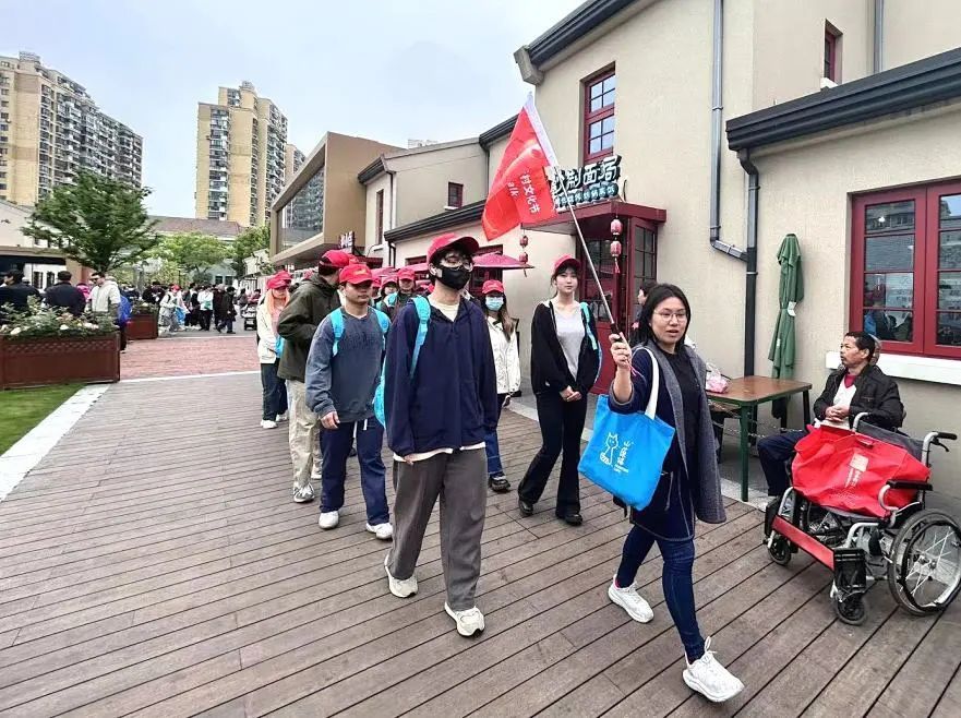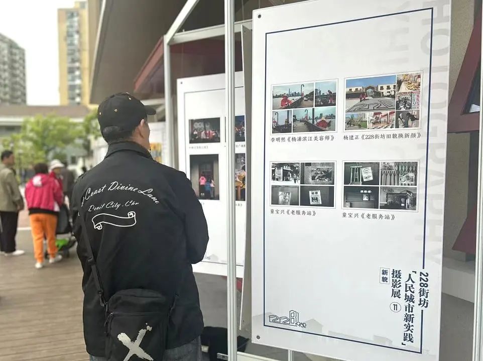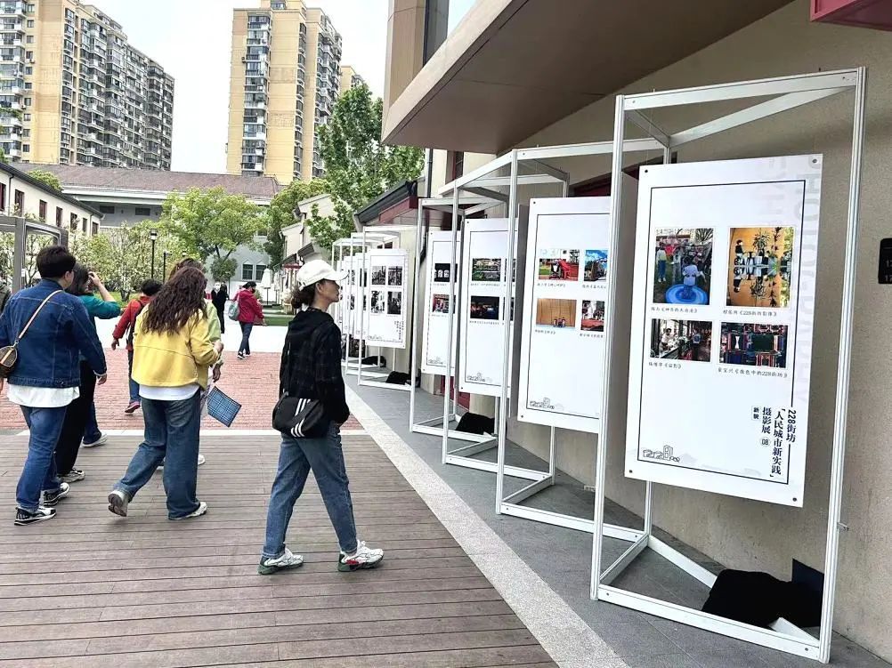 此外,摄影展旁有20名来自上海理工大学的青年学生接过老一辈的奋斗旗帜,向杨浦工业遗存迈进。他们从228街坊出发,走出一个“工”字型,在City Walk中赓续工人新村精神,绘出杨浦创新发展再出发的新画卷。