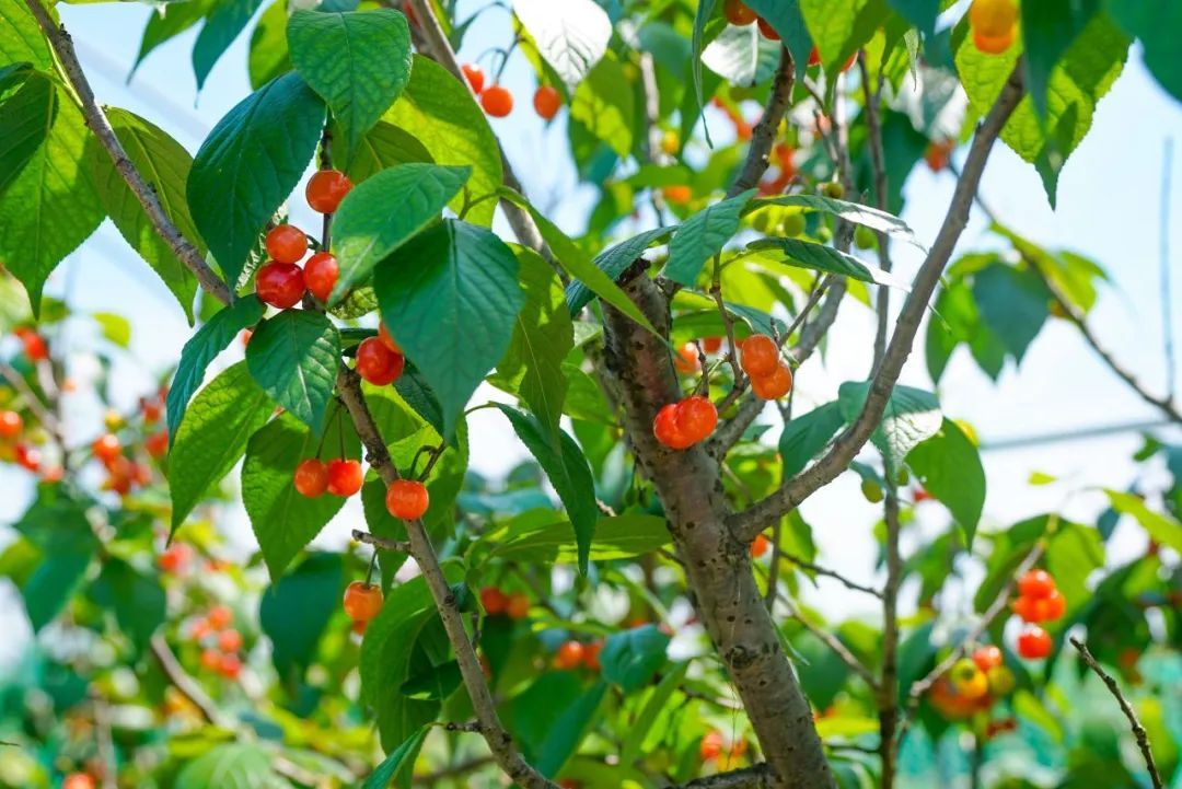 我国栽种的樱桃大致可分为两类,一类是原产于我国的中华小樱桃,另一类是欧洲甜樱桃,即大樱桃。为何万亩春产业园种植的大都是小樱桃?徐佳文表示,市场上普遍批量销售的是皮厚硬质的大樱桃品种,而小樱桃品种虽不利于长途运输,但皮薄娇嫩、风味独特,为了让市民们能品尝到新鲜小樱桃的最佳风味,他选择从四川引进中华小樱桃品种,就地栽种,让市民尝尝“别具一格的樱桃味”。