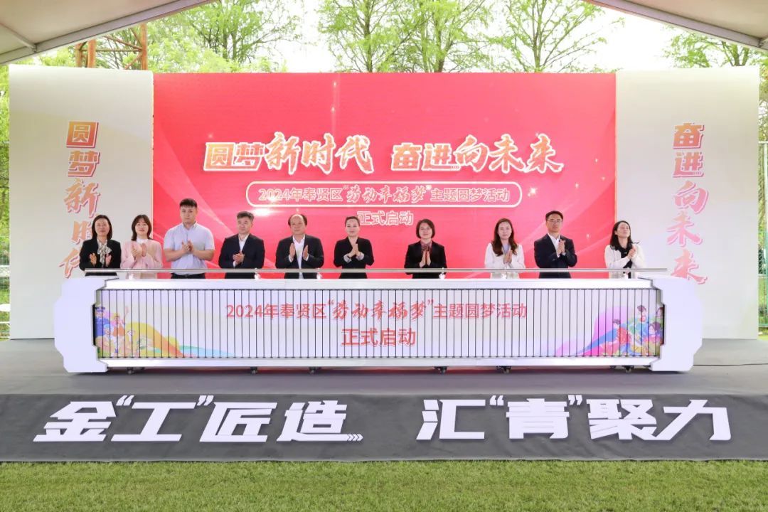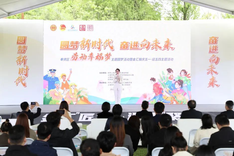 为深入学习贯彻落实党的二十大精神,在全社会弘扬劳动精神、奋斗精神、奉献精神、创造精神和勤俭节约精神,培育时代新风新貌,礼赞劳动美,致敬奋斗者。4月29日下午,“圆梦新时代 奋进向未来”奉贤区劳动幸福梦主题圆梦活动暨金汇镇庆五一迎五四主题活动在申亚森林足球营地举行。 第一篇章:致敬·岁月荣光 《永续匠心 万物芳华》 先进典型面对面 荣获市级及以上先进的集体和个人受到表彰。 第二篇章:传承·匠“新”之志 启动仪式 2024年奉贤区“劳动幸福梦”主题圆梦活动启动。 朗诵《赞工匠精神,做时代青年》 小品《爱路护路 畅安舒美》 第三篇章:奋斗·青春梦想 《Young气汇客厅》 青年岗位建功授旗 为青年岗位建功代表授旗。 宣读倡议 舞蹈《唐印》 活动现场还准备了部分金汇镇食品企业产品和金汇十二味农产品展示,供大家品尝。 表彰先进典型 彰显榜样力量 奉贤青年们定会 以劳模工匠为榜样 以“满分状态”坚持自立自强 在日复一日的“精益求精”中 始终保持 “践行初心 担当使命”的“精气神” 让奋斗的青春焕发绚丽的光彩
