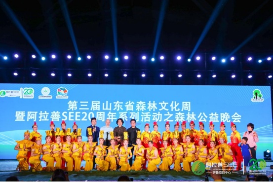 4月26日晚,第三届山东省森林文化周暨阿拉善SEE20周年系列活动之森林公益晚会在济南泉城公园生态广场举办。