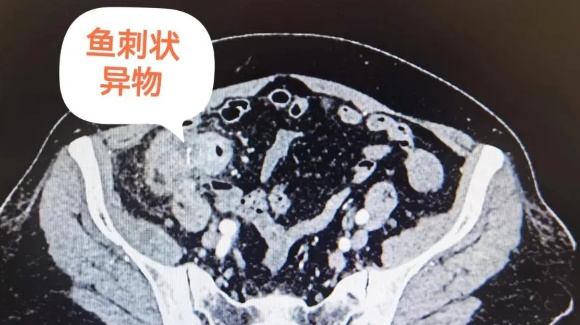 王阿婆被怀疑可能是结肠肿瘤,这让她感到非常害怕。于是,她急忙来到上海交通大学医学院附属新华医院普外科,找到了施宝民主任医师。施主任仔细查看了CT片子,发现右下腹囊实性肿物中间有一个2cm左右的异物,他怀疑这是一根鱼刺。