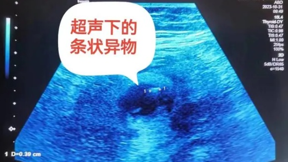 经过详细的询问,王阿婆确实喜欢吃鱼,而且吃的是鱼刺比较多的鱼。进一步的超声检查证实了施主任的猜测,回盲部脓肿中确实有一根鱼刺样的异物。
