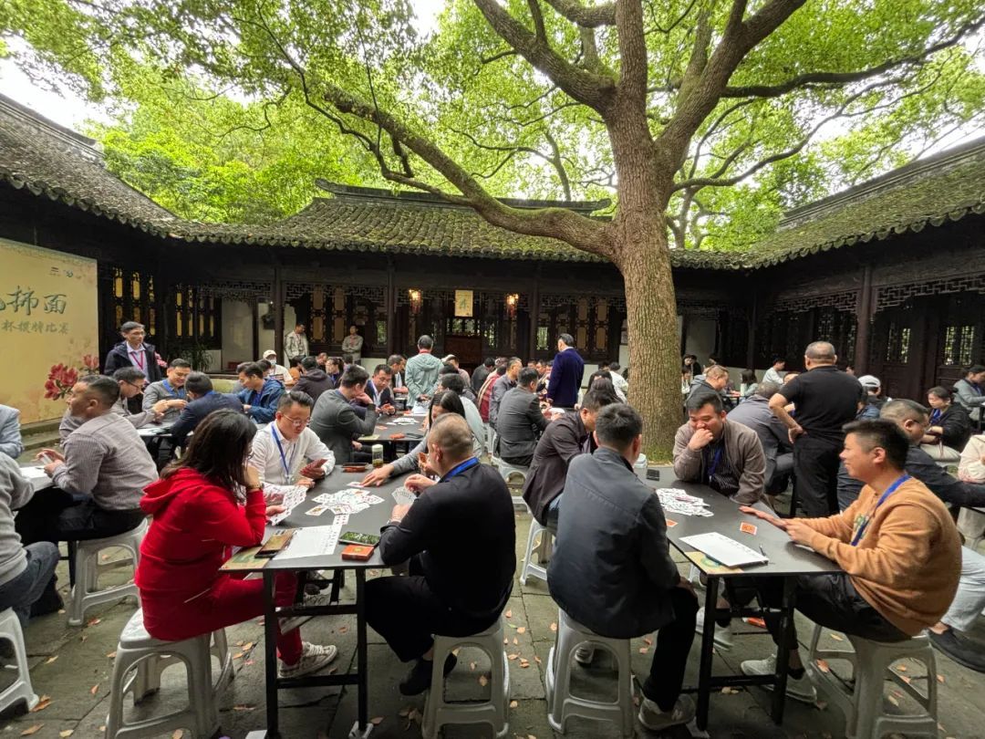 春光明媚,鹃影绰约。百年雕花厅庭院内,两盆数十年桩龄的精品杜鹃盆景将赛场点缀得格外雅致。10点整,选手们按照指定位置落座,四人一桌开始“博弈”。比赛时,参赛者需与队友积极配合,不仅要熟练掌握各种牌型组合,还要根据对手的出牌情况灵活调整策略。整场竞技氛围紧张而热烈,每一轮比赛都考验着大家的脑力。经过上下午五轮5个多小时的竞技,最终杨荣锋、袁贵华、满启明等24人分别荣获一、二、三等奖及优胜奖。