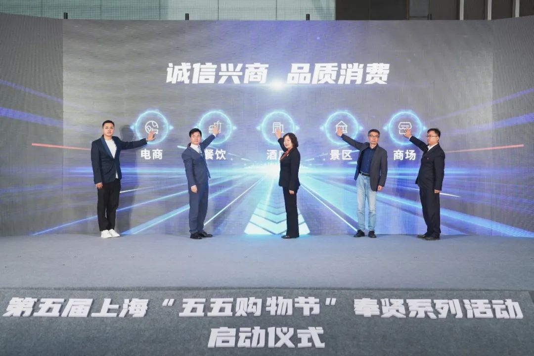 4月30日下午,第五届上海“五五购物节”奉贤系列活动在百联南桥购物中心正式启动。市商务委员会副主任张国华,区委副书记、区长王益群共同推杆,为上海“五五购物节”奉贤系列活动拉开帷幕。