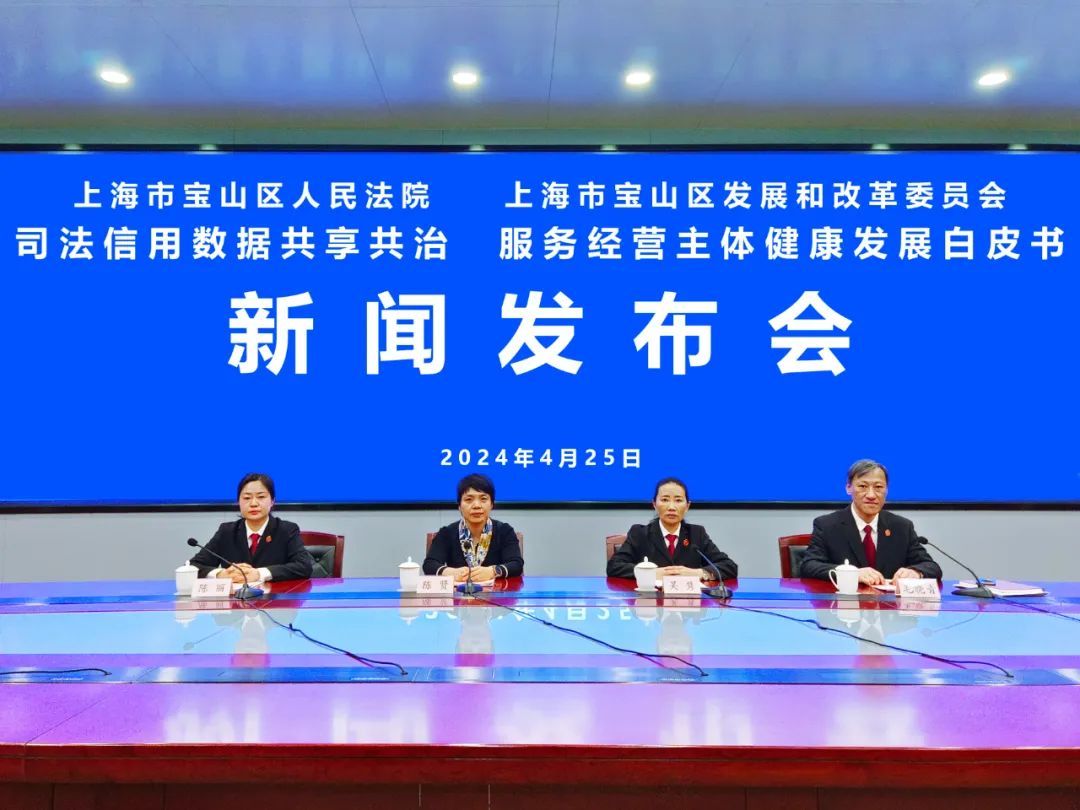 4月25日下午,宝山区召开“司法信用数据共享共治,服务经营主体健康发展白皮书”新闻发布会。区发展改革委、区人民法院、区人民法院执行局相关领导参会并发言。新闻发布会上,区发展改革委和区人民法院共同展示了“自动履行证明”信用信息共享共治的最新成果。双方联合发布了《司法信用数据共享共治,服务经营主体健康发展白皮书》,旨在通过构建完善的司法信用共享共治工作机制和实施信用治理六项举措,为经营主体提供更加便捷、高效的司法信用服务,助力企业稳健发展。并就记者的提问进行了详细解答。白皮书的发布标志着府院协同联动打开新局面、营商环境优化谱写新篇章、信用激励应用迈上新台阶。通过将区人民法院的“自动履行证明”信息纳入《上海市公共信用信息报告》,实现“数据高效流转,企业减负前行”的目标,这一全市范围内的首创做法,不仅是对自动履行法律义务的经营主体进行信用领域联合激励的体现,也是对我区营商环境优化的又一次突破性、创新性地改革举措。区发展改革委将以此次发布为新起点,持续拓展更多信用激励应用,为进一步优化我区营商环境注入新的信用动力。