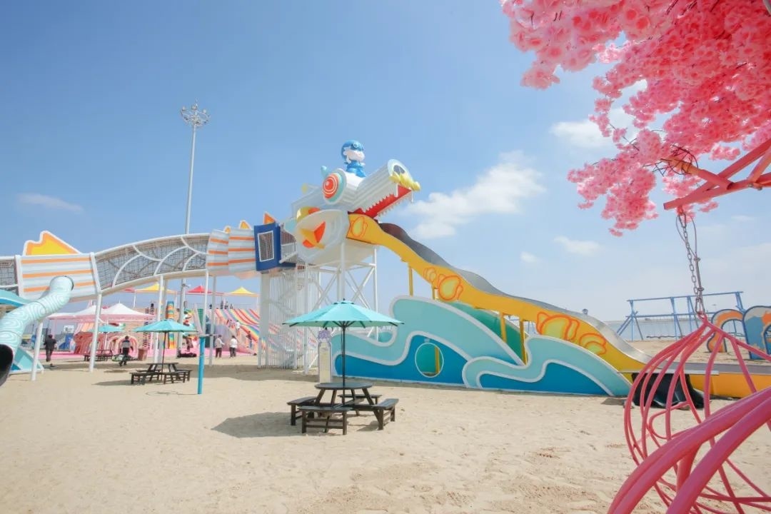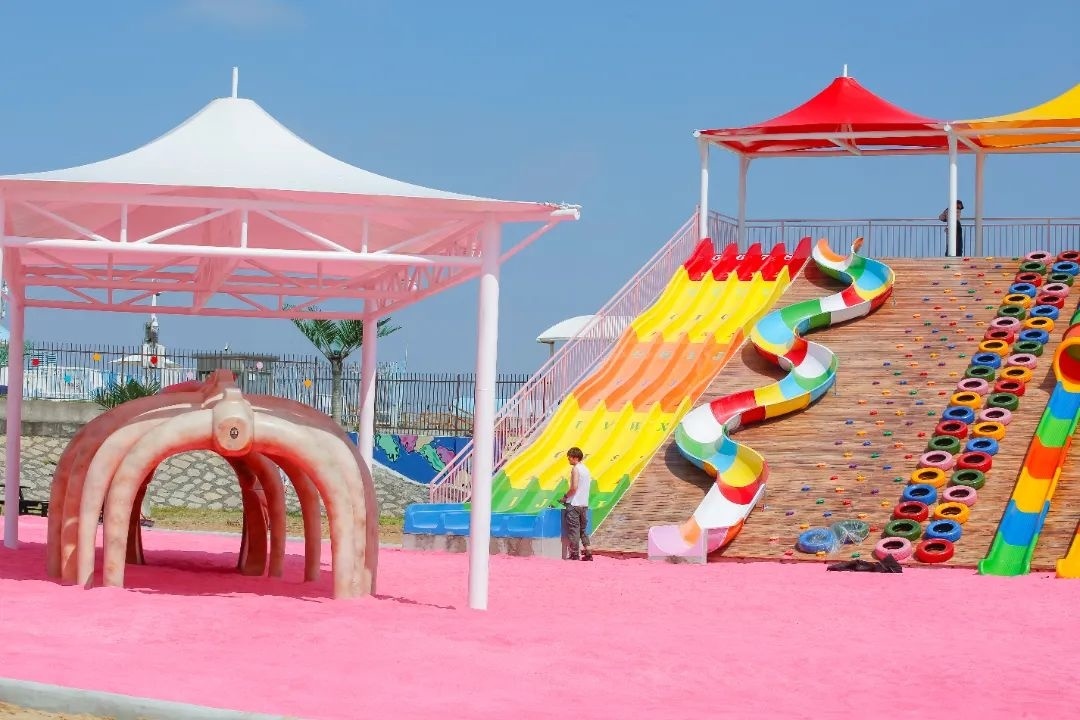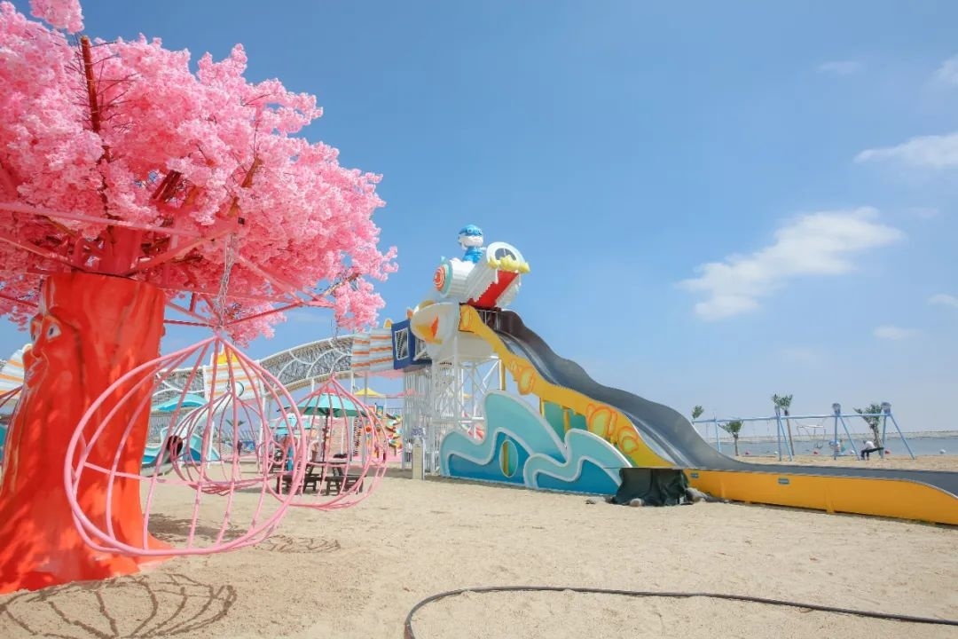 位于金山城市沙滩西区的“阿浪冒险岛”,在保留园内原有的巨型滑梯“阿浪小青龙”、蹦蹦云、弧形秋千等无动力设备的基础上,园内新增了彩虹滑梯、粉色沙滩、樱花树吊椅等各种网红游乐设施。眼下,工作人员正在为恢复开园做积极的准备。