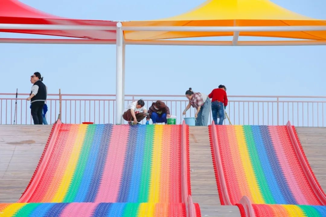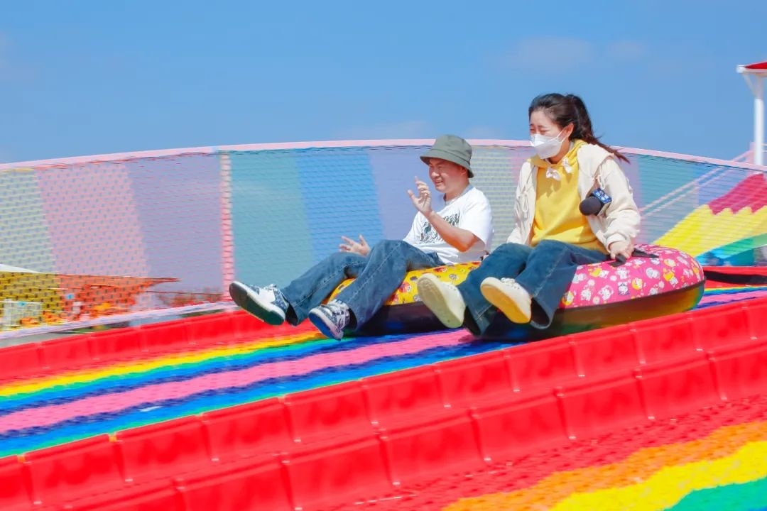 此次新增的各种网红游乐设施中最受瞩目的便是网红彩虹滑梯,该滑梯高8-10米,长约38-40米。