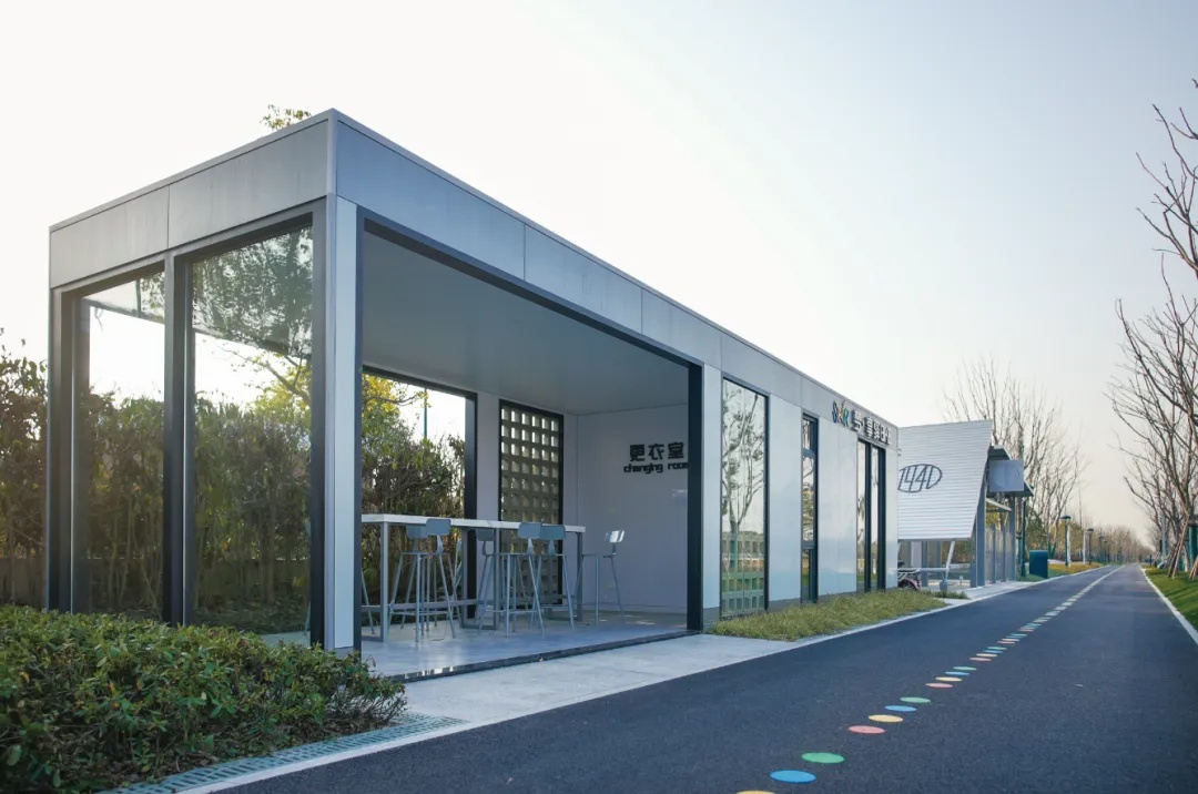来之前还有伙伴问起在梦享公园健身跑的话会不会有啥服务设施,到了此地亲身一试,大家纷纷赞不绝口。10公里跑道上,依次树立着从1km到10km的标识牌,沿途增设功能服务设施,如跑步更衣室、卫生间、休息驿站等。不少驿站的设计充满亮点,走累时我们几个就在一个像是白色蒙古包似的休息驿站里坐了好一会儿。道路旁,还有各种类型色彩斑斓的儿童游乐设施,为带着孩子前来健身的人们增添童趣。