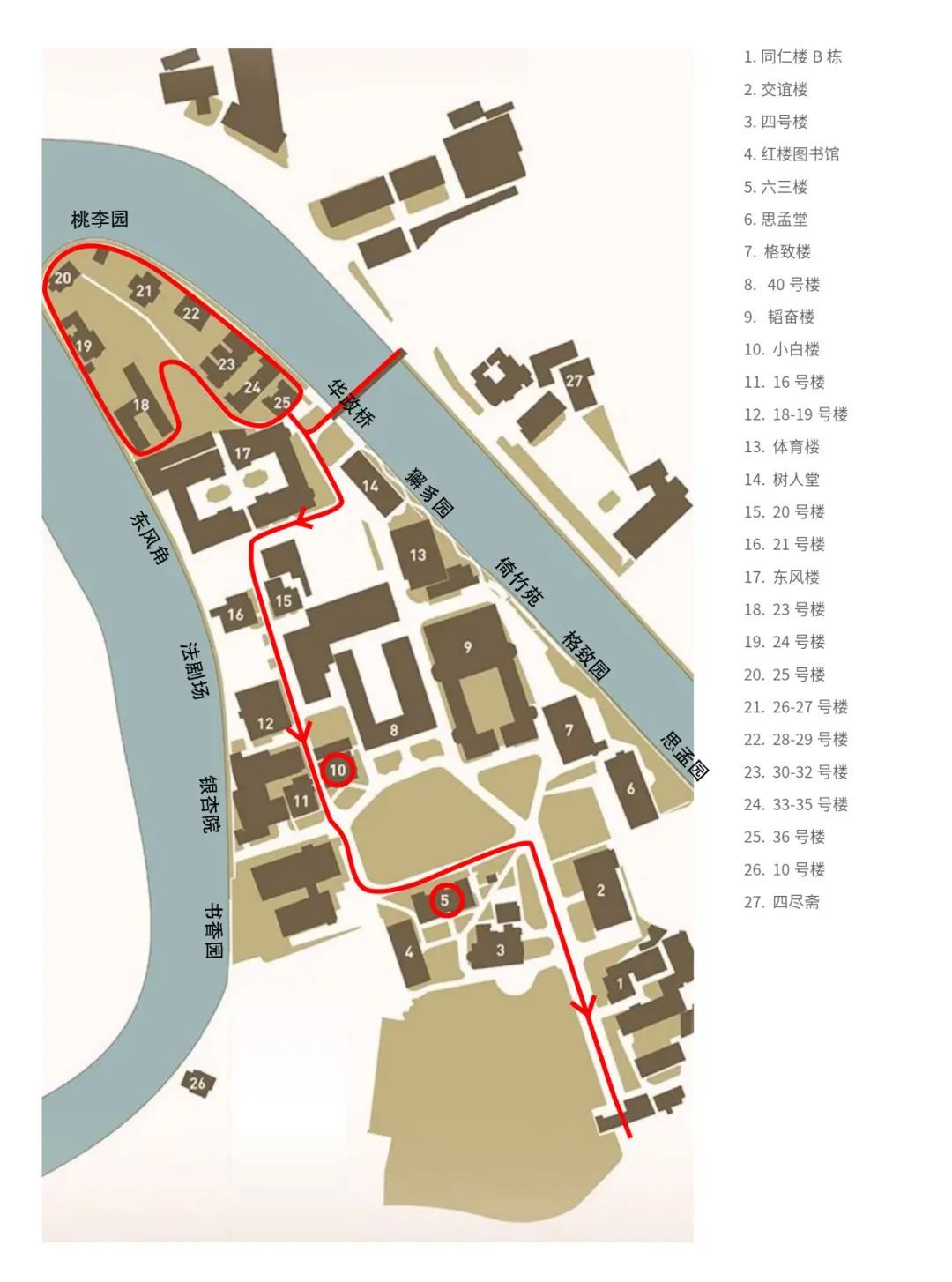线路:华政桥→原八栋家属楼→小白楼→六三楼→南门