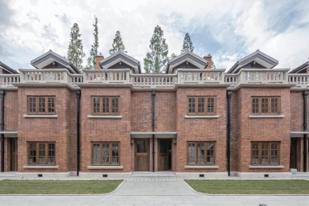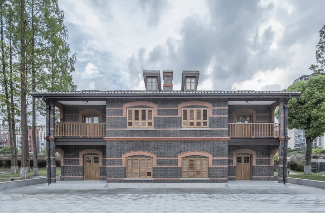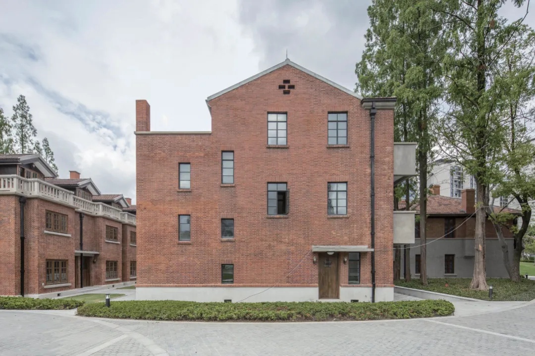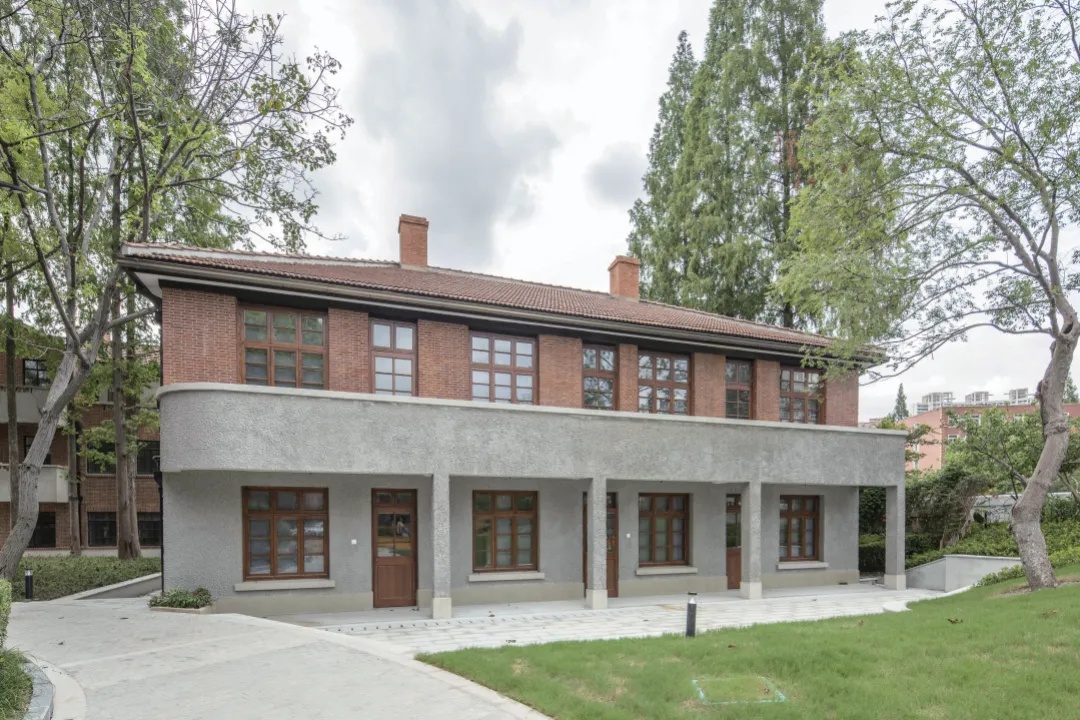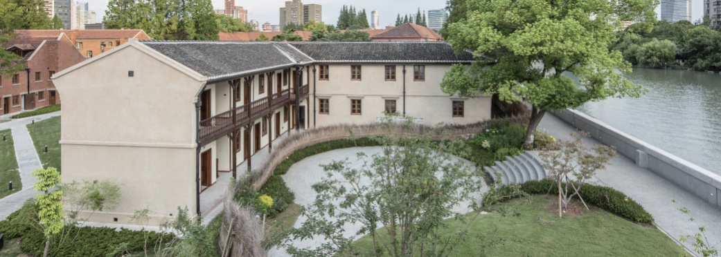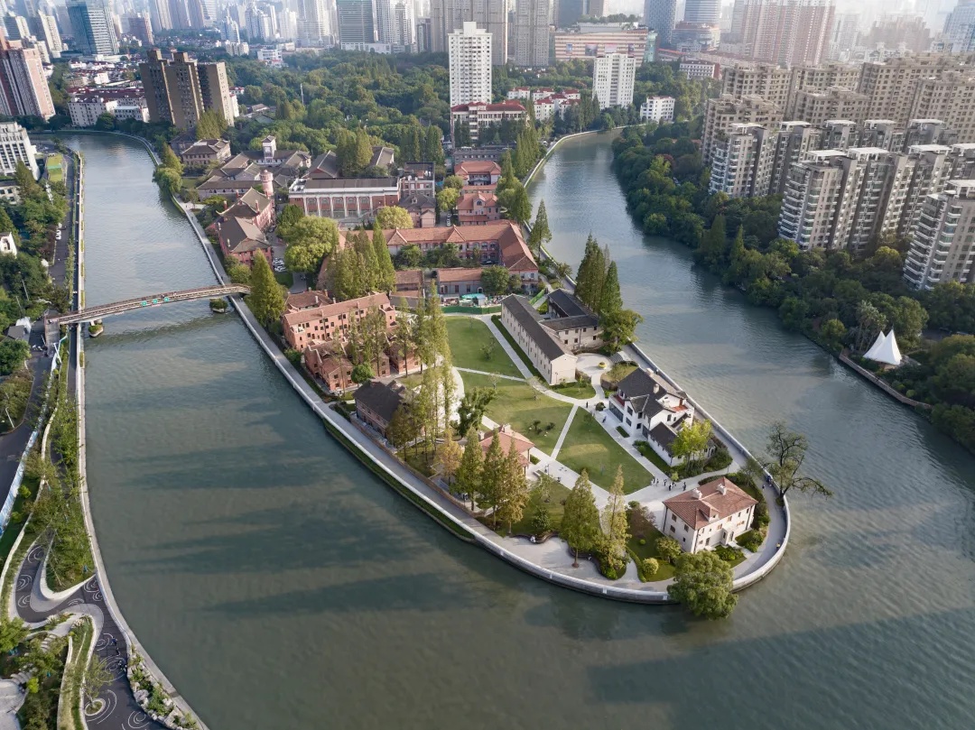 原八栋家属楼融合中西风格,汲取南方中式建筑精髓,与校园自然环境和谐相融。家属楼所在的三角地块是苏河湾的璀璨明珠,拥有180°急转弯的独特地势和近270°的河景。为了开放滨河空间,校方结合历史建筑,以“彰显华政建筑风貌,提升滨河空间品质;强化校园人文元素,激活滨河人文空间”为设计理念,将原有单一的人行步道改造成为“校园景观+共享空间+滨河步廊”的全新模式。