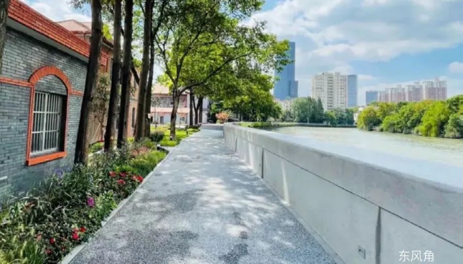 2019年8月,华东政法大学段初步贯通了苏州河步道,2021年,提升工程正式启动。不仅拓宽了步道,还取消了隔离围栏,让市民可以更加自由地漫步在苏州河畔,在尽享岸线景观的同时,能够近距离接触“圣约翰大学历史建筑群”,让原本的内花园真正变成了共享的城市“后花园”。现在苏州河畔华政段形成了“苏河华政十八景”的新景象。其中,苏河步道有十景,与历史建筑相得益彰,如思孟园、格致园等,而华政校园内的八景也同样引人入胜。从华政桥到书香园,每一处都充满了学术气息和人文情怀,让人欣喜沉醉。