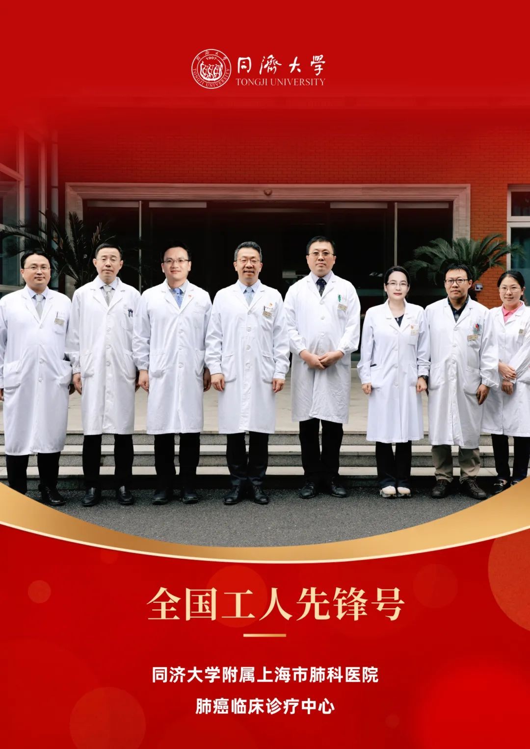 同济大学附属上海市肺科医院肺癌临床诊疗中心拥有4个普通病区、1个特需病区、1个I期病房和1个肺癌免疫实验室,临床医护团队拥有4位博士生导师和12位硕士生导师以及4位教授和4位副教授,临床科研团队拥有3名实验室高级首席研究员(PI)和1名副研究员。中心是上海市“重中之重”临床重点学科,是中国医促会胸部肿瘤学分会主任委员单位、中国临床肿瘤学会非小细胞肺癌专委会主任委员单位、中国抗癌协会肿瘤药物临床研究专委会主任委员单位和中国初级保健基金会肺癌专委会主任委员单位。中心曾获上海市抗癌科技奖一等奖、中国抗癌协会科技奖一等奖和2023年上海市“工人先锋号”。