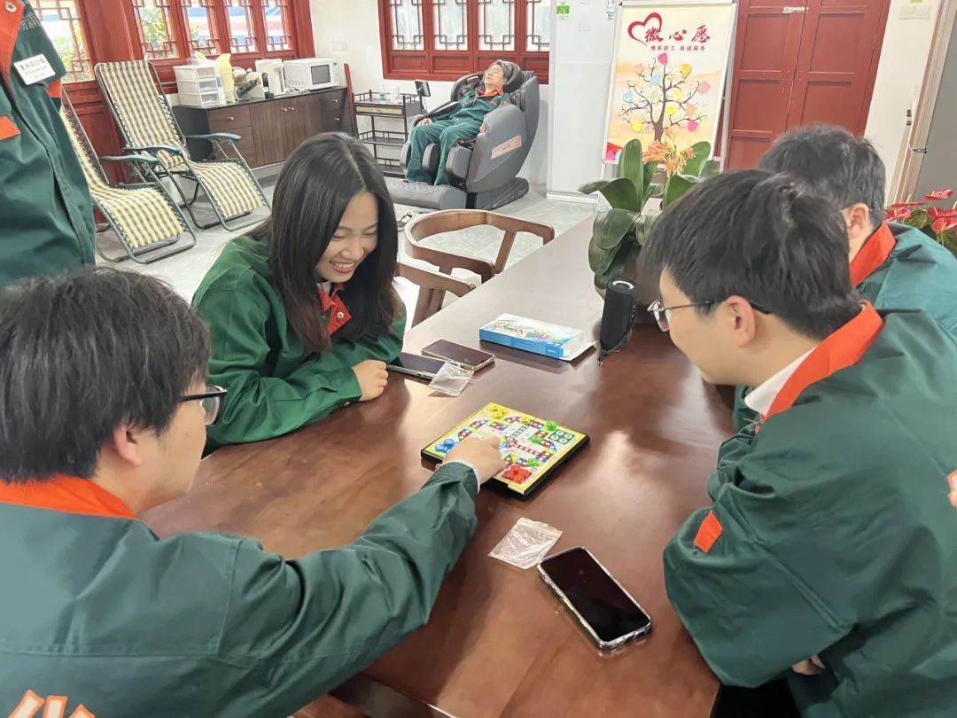 为满足职工多样化需求,休息室划分不同功能区域,配备会议桌椅、沙发,书柜、空调、冰箱等设施设备,方便职工休息使用。区别传统认知,如今绿化一线的职工平均年龄也越发年轻化。现场就有几位前来参观的一线职工。大家平时在各自的工作岗位上难得碰面。现在可以聚在一起交流工作进展,休息时间玩益智游戏,气氛十分融洽。