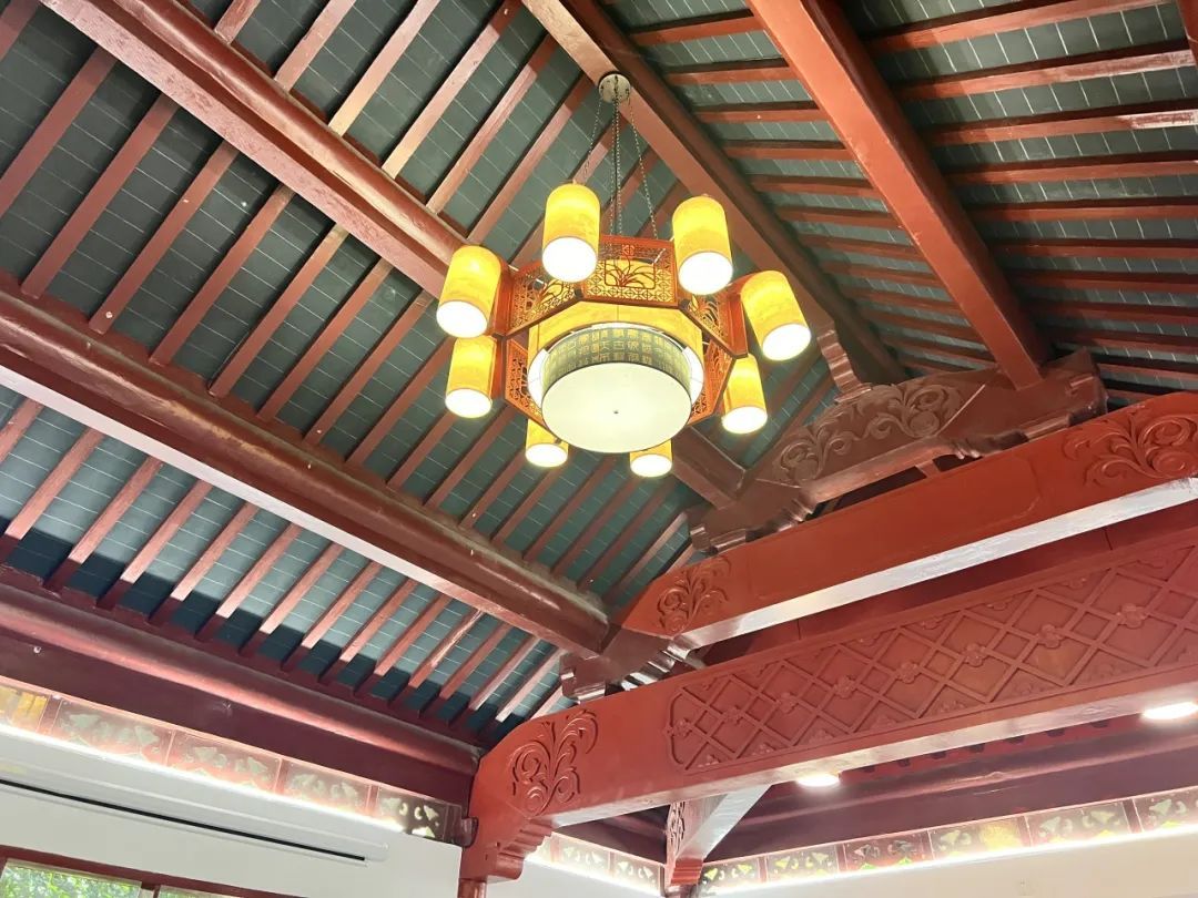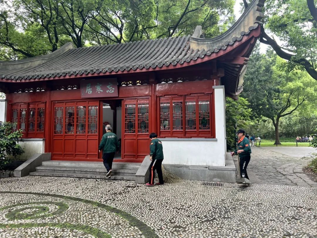 馆南有长方形四角亭,馆亭以长廊相连,廊侧有缀以如意图形的鹅卵石地坪。这一座造型别致,充满古典韵味的馆所名叫“忘寒居”,就坐落在内江公园的正南方。如今新建成的职工工间休息室就选址在这里。
