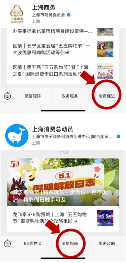 打开“上海商务”“上海消费总动员”公众号以及“随申办”微信小程序、“随申办”APP或“随申办”支付宝小程序,点击首页“55购物节”图标或下方轮播图即可进入活动页面。