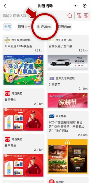 点击“附近活动”,市民可以快速定位并导航到附近正在举办的活动,了解活动内容、地点、起止时间以及主办单位等信息。满足就近游玩购物的需求,是不是超方便~