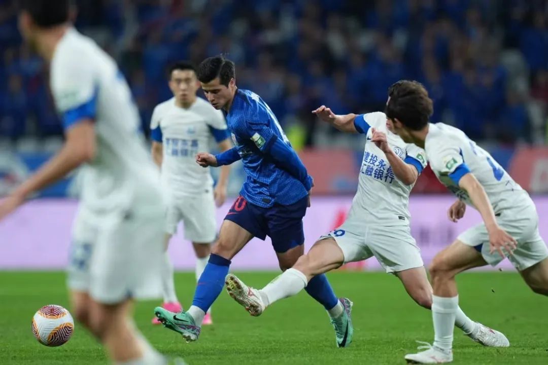 开赛不久,角球进攻中吴曦禁区线上凌空劲射,虽然被对方门将扑出,徐皓阳跟上小角度破门,申花1比0领先。