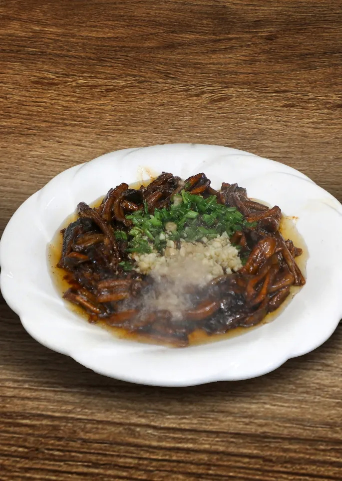 响油鳝丝,是金山地道名菜。此菜红绿黄白,色泽鲜艳;鲜嫩爽滑,入口不腻;葱姜蒜椒,香气扑鼻;浇上热油,“噼啪”有声,令人食欲大开。