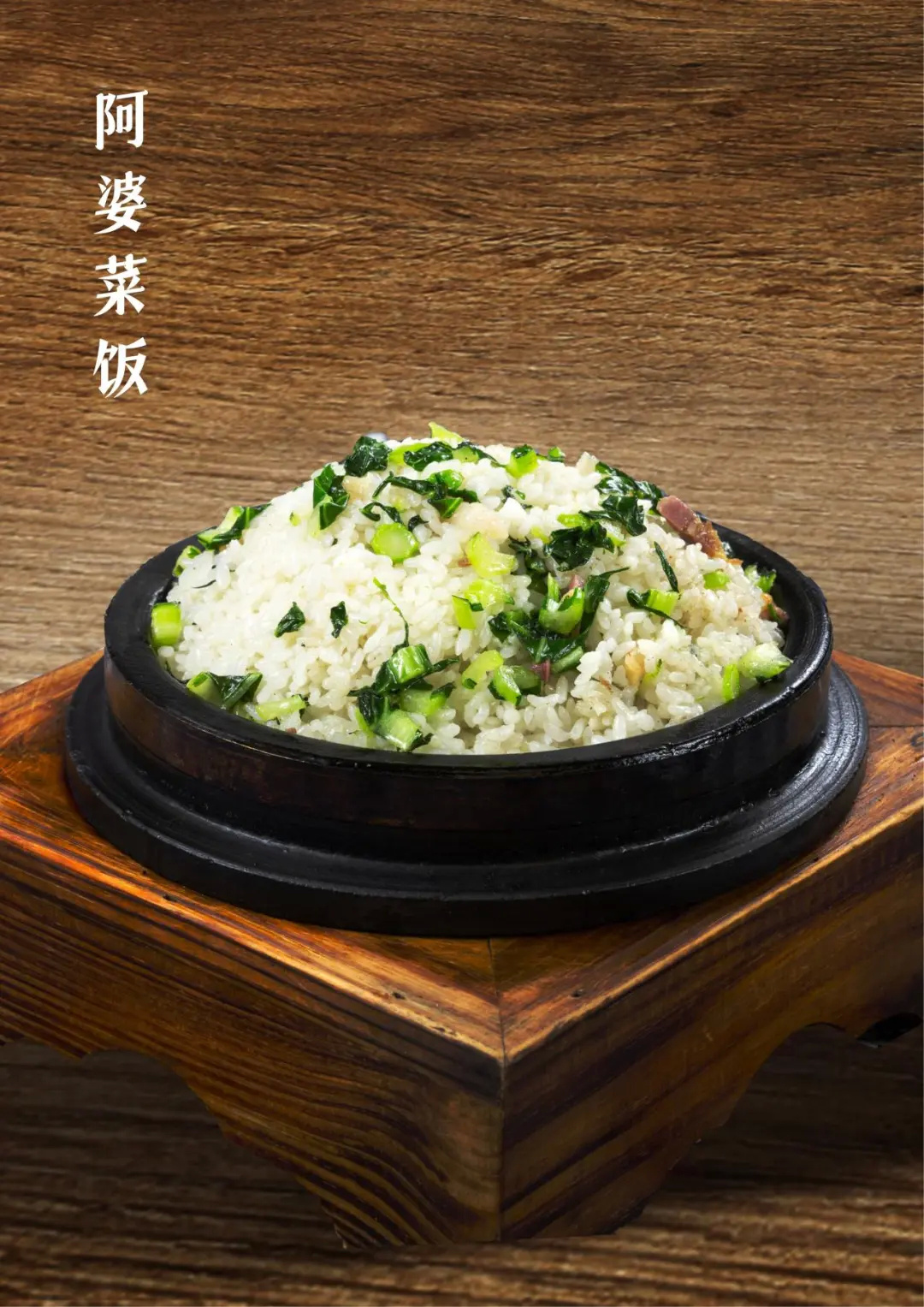 阿婆菜饭,是乡村特色美食,以本地大米、菜籽油、猪油、青菜、咸肉为主料,秘诀是用土灶烧制。米饭软糯鲜香、锅巴焦香四溢,粒粒分明,细细品尝,可以享受舌尖上的双重盛宴。