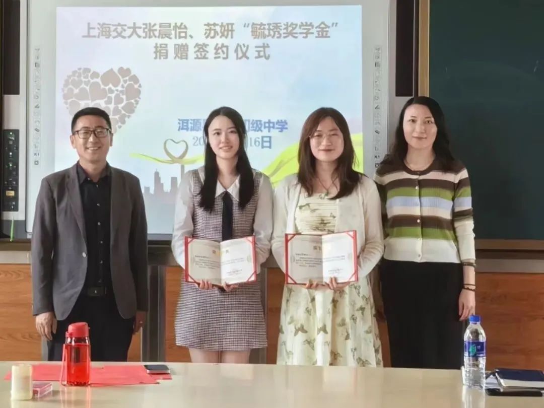 两位交大姑娘用这些钱设立了“毓琇奖学金”,自2024年起,分5年捐赠,每年1万元,用于奖励洱源县玉湖初级中学经济困难、表现突出的学生。