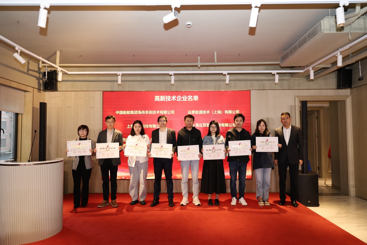 会议表彰了2023年度首次认定的23家“高新技术企业”和2家“科技小巨人”企业并向他们颁发了证书。上海云济信息科技有限公司、诺为泰医药科技(上海)有限公司分享了创建和获评高企的心得。