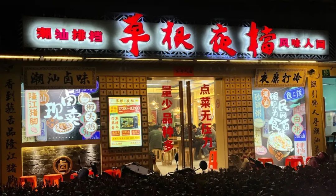 如果你对市井风味、潮汕美食有兴趣,不妨来草根夜档·胶己人的排档试试。这家店烟火气十足,每日供应的菜式高达150+种,明档厨房摆满各色菜品卤味,无数新鲜美味映入眼帘,光是看着就让人心动不已。