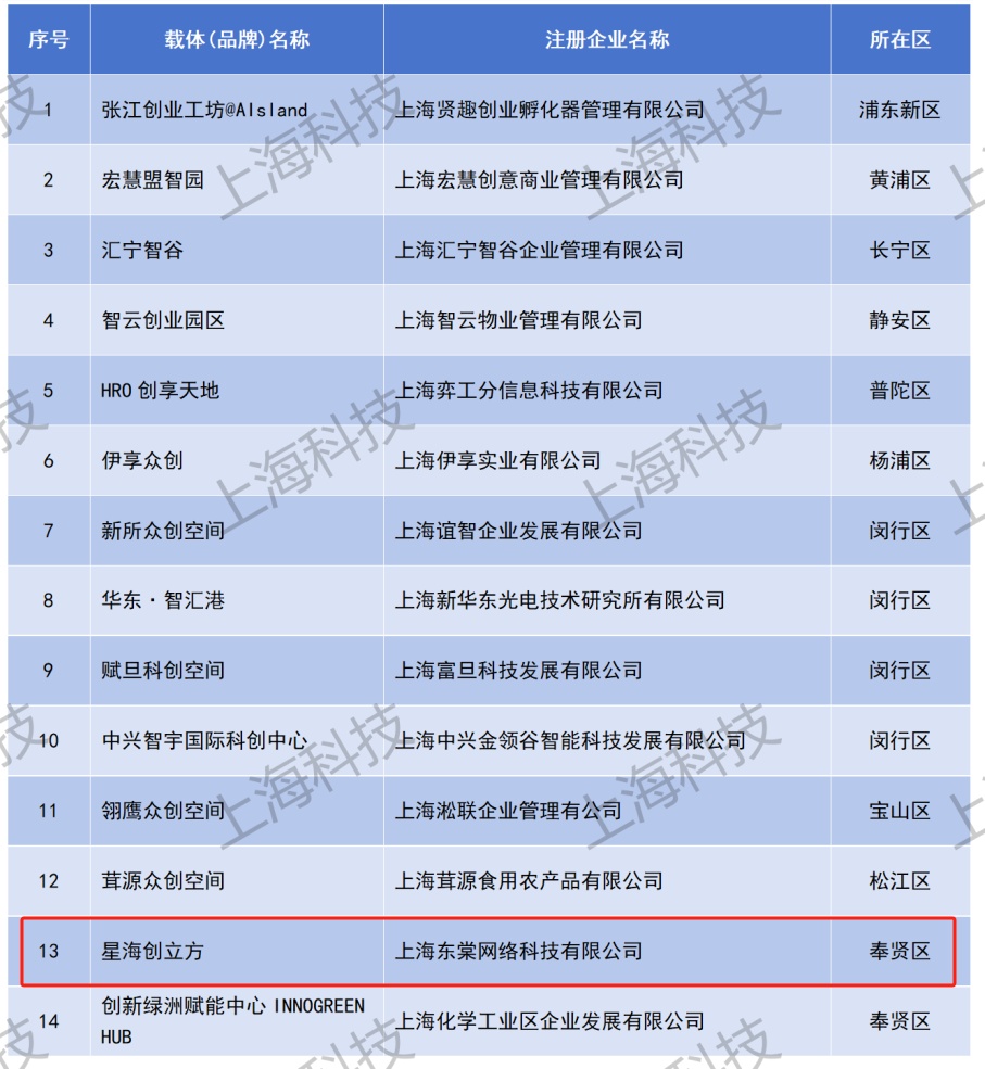 根据《上海市科技创新创业载体管理办法》(沪科规〔2023〕12号)的相关精神和要求,目前,2024年本市创新创业载体培育名单已公布,经自主申报、形式审查、专家评审,星海创立方·众创空间成功入选2024年上海市科技创新创业载体培育体系。