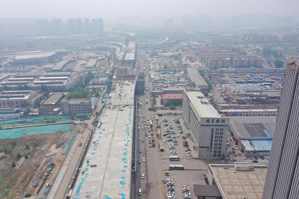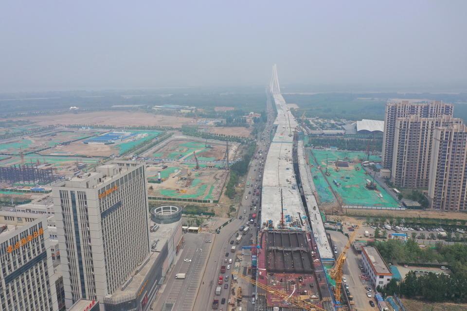 这是正在建设的济南黄河大桥新桥的南段引桥,新桥全长7.748公里,这是其中的一部分。按照设计方案,大桥向南将直接连通零点立交桥。
