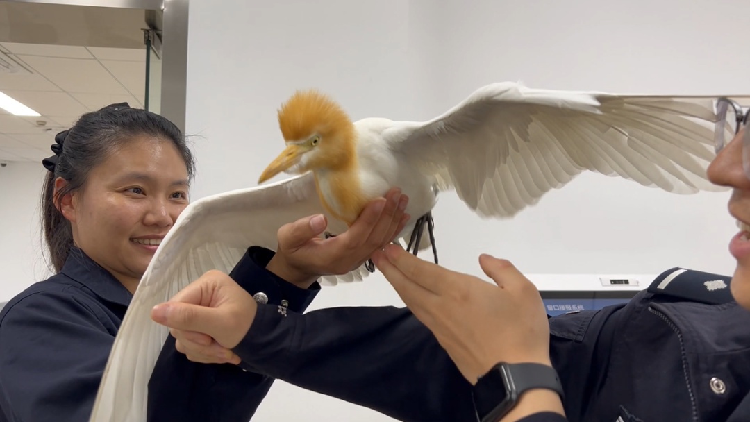 杨浦区野保站工作人员对这只牛背鹭进行健康检查,“这只牛背鹭没有受伤的痕迹,翅膀生长也在正常范围里,且脚掌比较有力。”工作人员吴壮豪说。