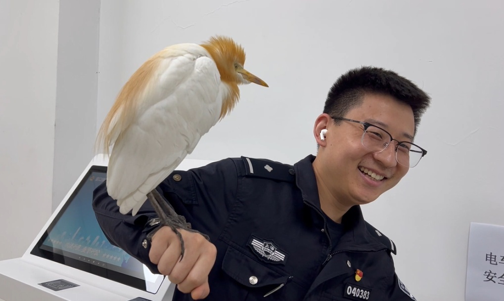 属地长海路派出所民警接到求助后,立即将这只牛背鹭带回了派出所,同时通知杨浦区野保站工作人员赶来。“当看到这只鸟的时候,它背上、头上的羽毛都是金黄色的,很是漂亮。”民警顾文翰说。