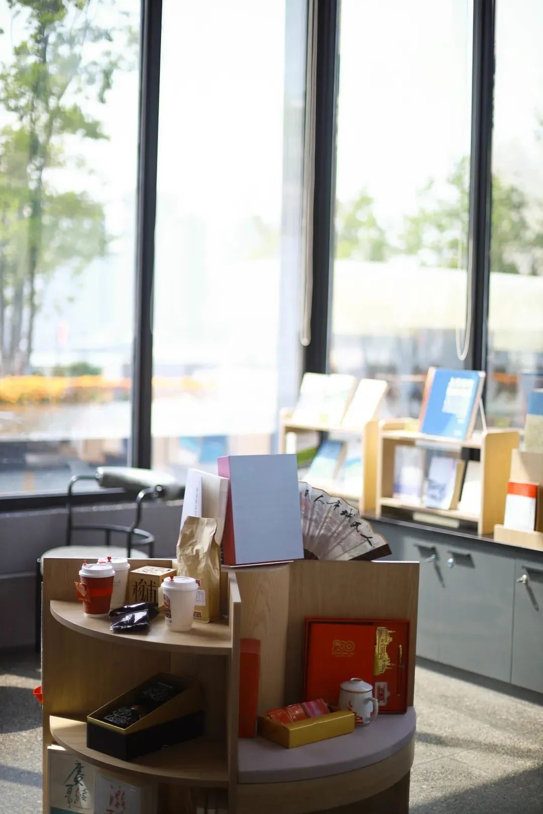 为了丰富游客体验,馆内设置了“漫游杨浦滨江”模拟骑行装置,可以风雨无阻地欣赏杨浦滨江美景。一楼的尽头还隐藏着一处“书香空间”,游客可以在绝佳视角、最美景致的环抱下舒适阅读。