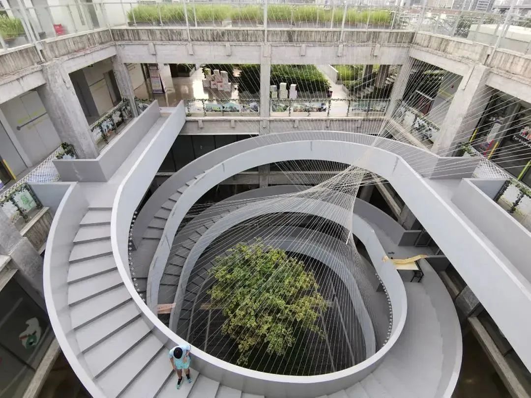 层层叠叠的绿植、螺旋上升的钢结构、如同丘陵般自由延展的边界……绿之丘的建筑造型独特,远远望去,透露着浓浓工业风。顶楼有一段U型步道,提供270度观景平台,当漫步其间,有一种腾空临江的视觉效果,发现意想不到的美景。