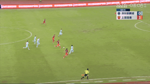 上半场补时阶段,又是茹萨禁区前沿断球成功传入禁区,巴尔加斯外脚背弹射入网,半场海港队3比0大比分领先。