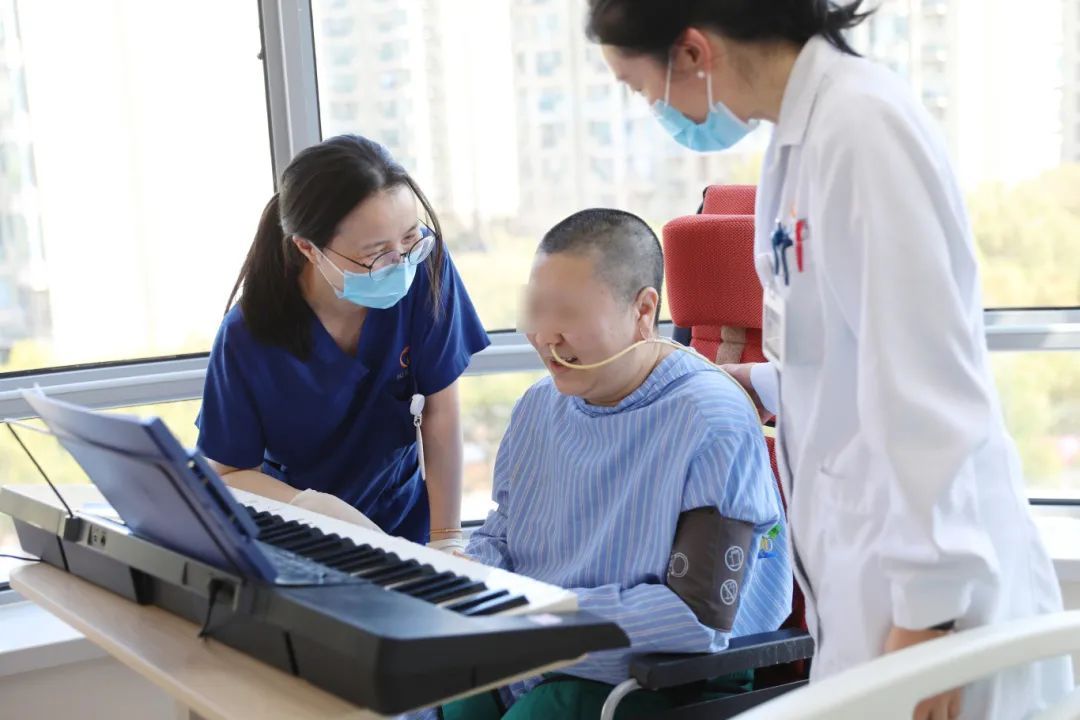 康复期间,物理治疗师团队每日为李女士进行体位管理,帮助她逐渐适应不同的体位,通过核心肌力训练、平衡功能训练、步行步态训练、运动训练等多方位训练,改善肢体功能。作业治疗师了解到李女士平时喜欢音乐,结合她的兴趣爱好,作业治疗师利用智能木插件和电子琴,提高李女士的手部精细运动能力;同时通过情景模拟形式进行日常生活活动实用性训练,帮助她重新获得自理能力。此外,中医科的医生还为李女士提供针灸和穴位埋针等传统治疗,加速康复进程。医治团队还每周举行会议,全面讨论李女士的病情进展,及时调整治疗方案,以确保康复效果最大化。