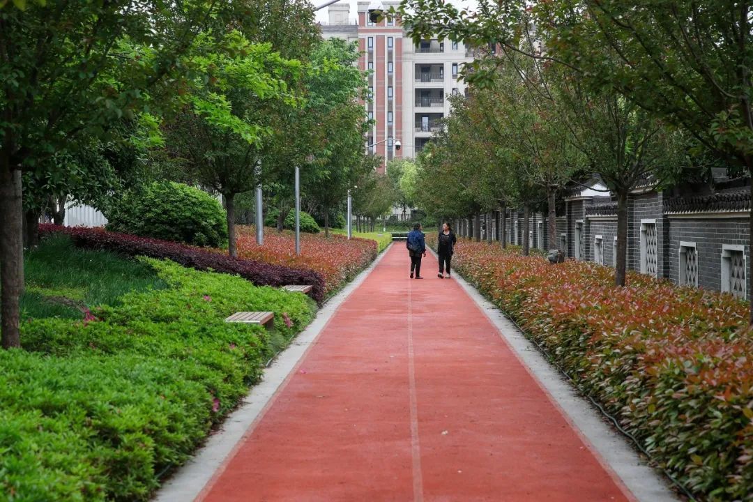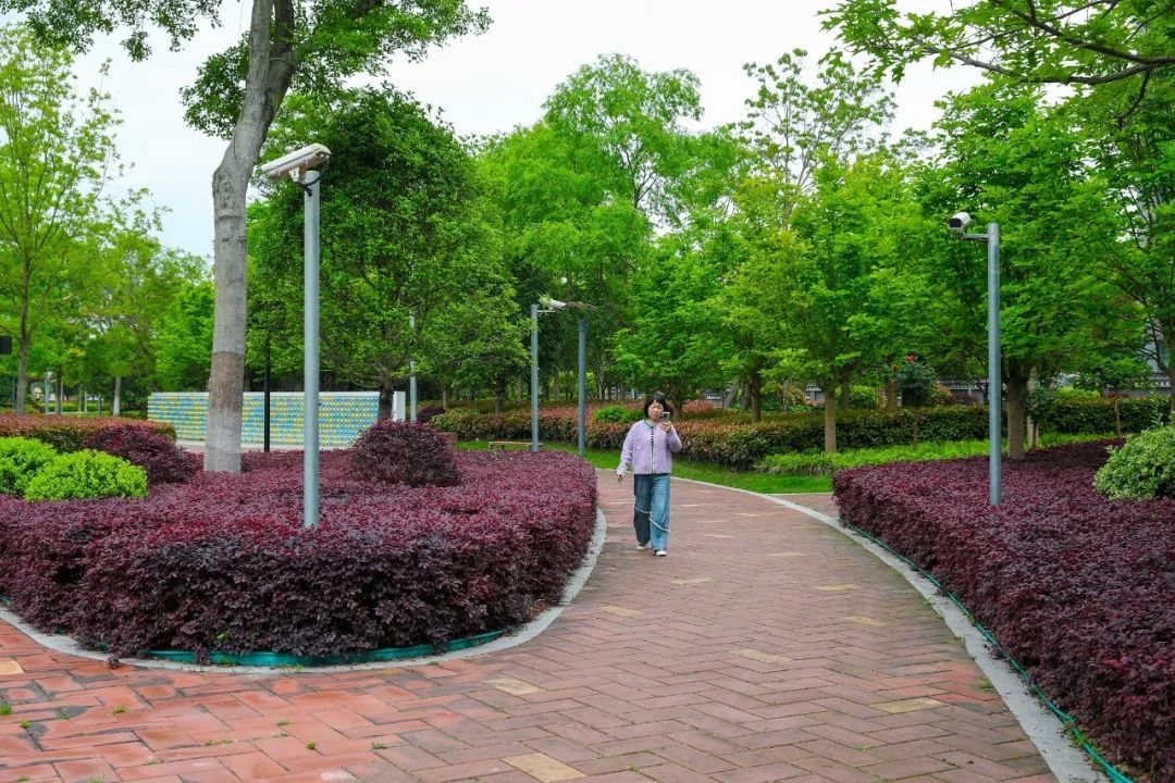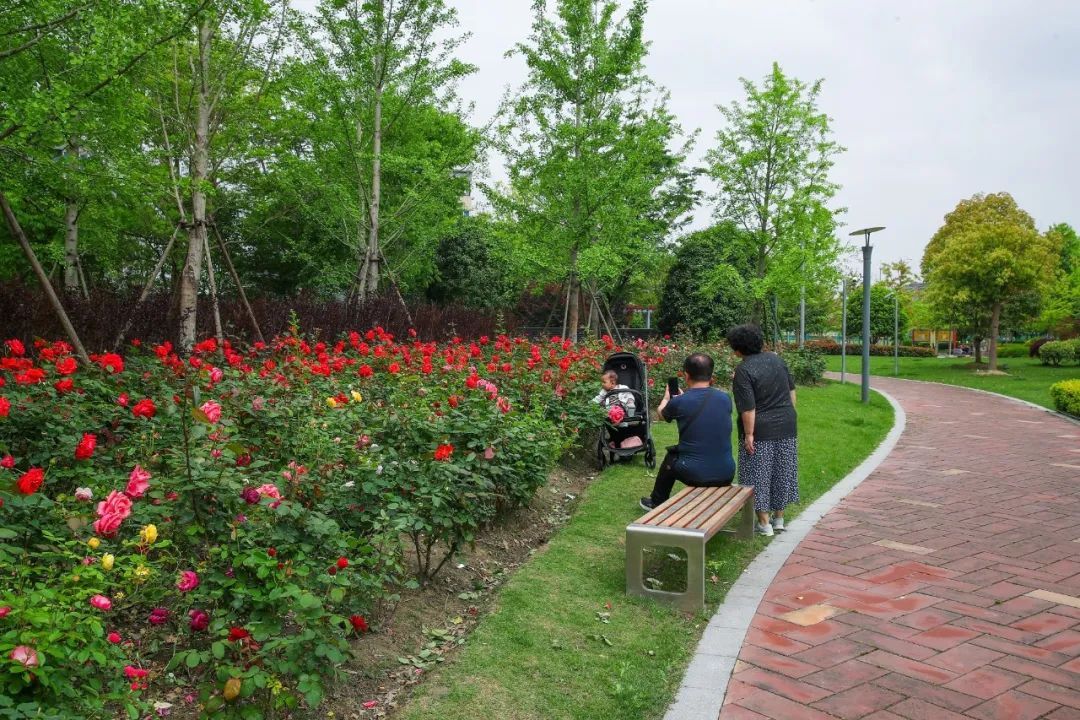 走进公园内,只见月季花开正艳,它们的花型大小不一,花朵色彩绚丽夺目,吸引了路过的市民们驻足观赏。此外,公园内精心布置了玉兰园、桂花园、梅园、月季园、宿根花卉园五大专类园,丰富了植物种植群落和层次,营造出“四季有景”的植物景观,一条600米的有氧环步道,将各个景点有机串联起来,打造出了“一步一景”的公园氛围。