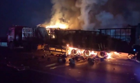 据河南消防消息,5月3日晚上10时49分,河南安阳市消防救援支队接到报警称:一辆半挂货车在高速上起火。
